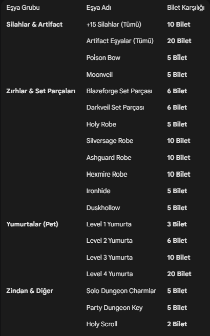 Sunucumuzdaki eşya trafiğini dengelemek ve envanterinizdeki fazlalıkları değerli ödüllere dönüştürmek için Eskici Sistemi devreye alınmıştır. Bu sistem sayesinde hiçbir eşya değersiz değildir.