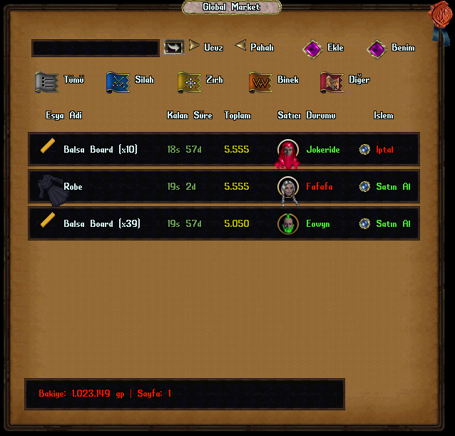 Avatar Tıklama: Market listesindeki satıcı ikonuna tıkladığınızda (eğer satıcı çevrimiçiyse) direkt olarak ona mesaj gönderebilirsiniz.